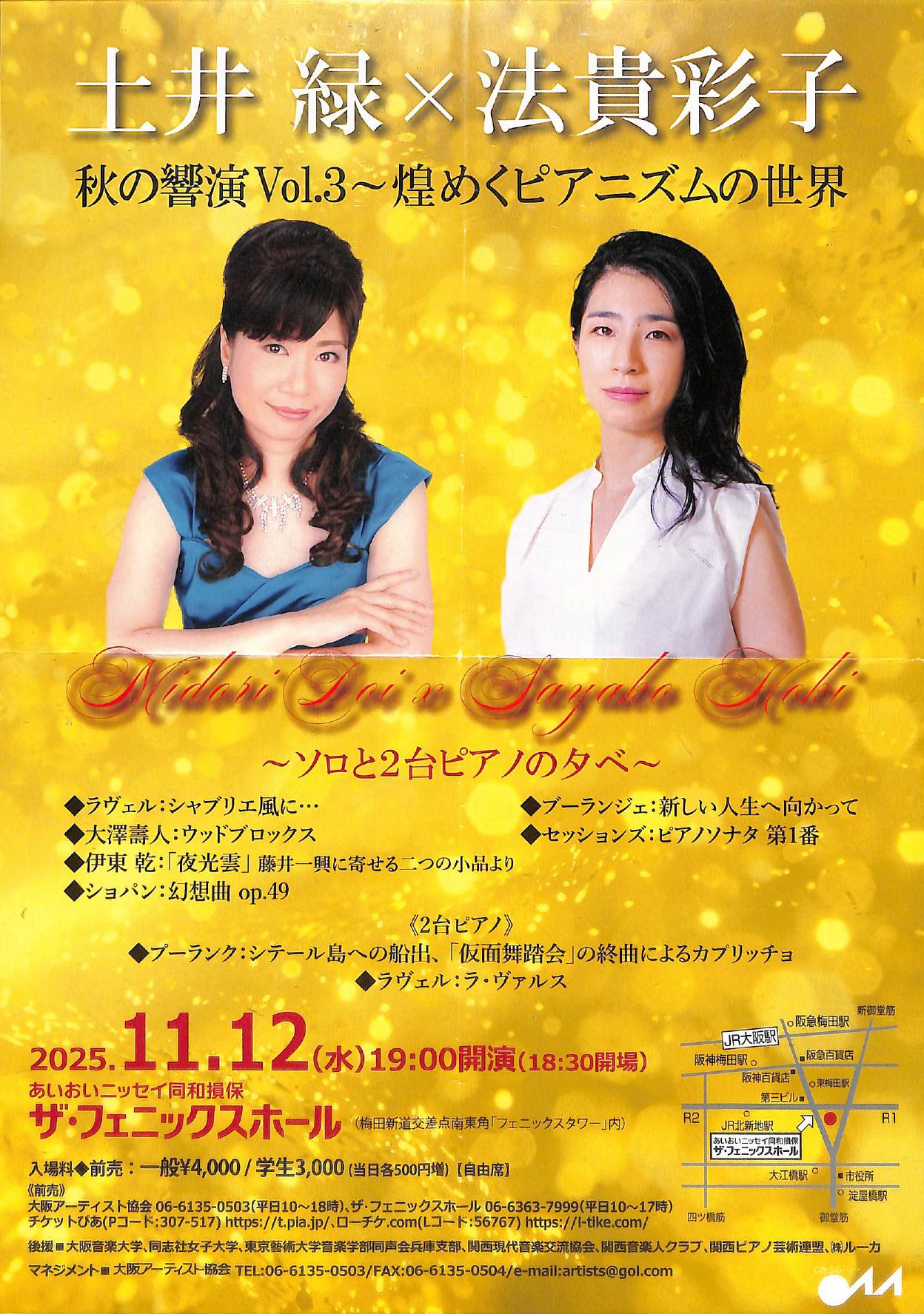 土井緑×法貴彩子 秋の響演 Vol. 3~煌めくピアニズムの世界